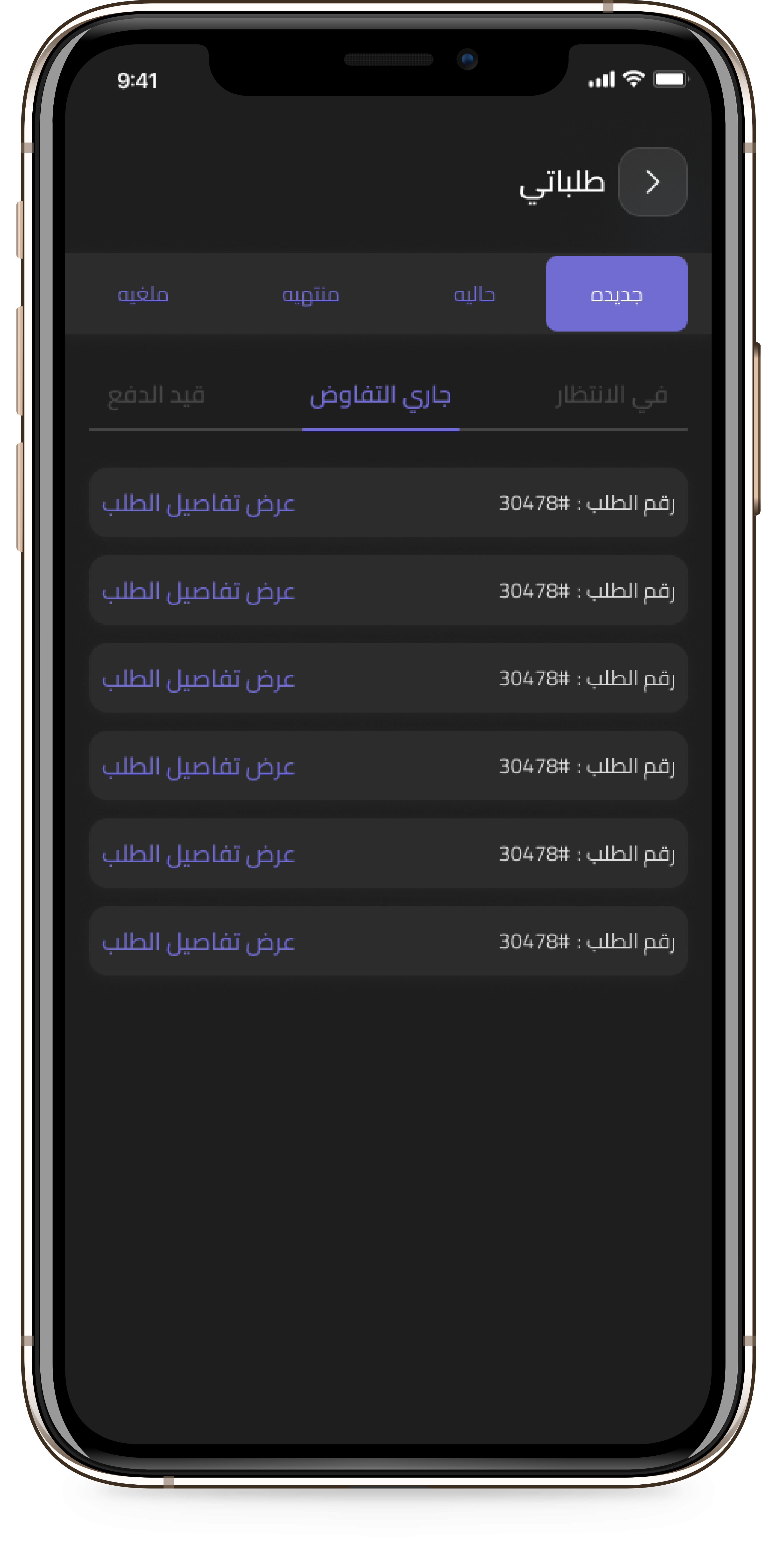 يمكن للعملاء متابعة حالة طلباتهم والتواصل مع مقدمي الخدمة وإدارة التفاصيل الخاصة بالمشروع من خلال التطبيق.
